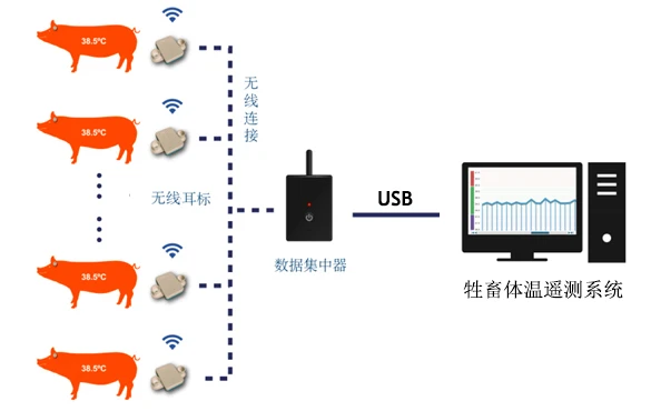 The system is composed of three parts: remote sensing intelligent ear mark, concentrator and PC application software Jzsoft.It can measure the temperature of the body continuously under the sober and free-state of the livestock. The remote RFID reads the information of the ID and position of the livestock. It is mainly used for epidemic prevention, breeding,breeding and production management of livestock such as pigs, cattle and sheep...